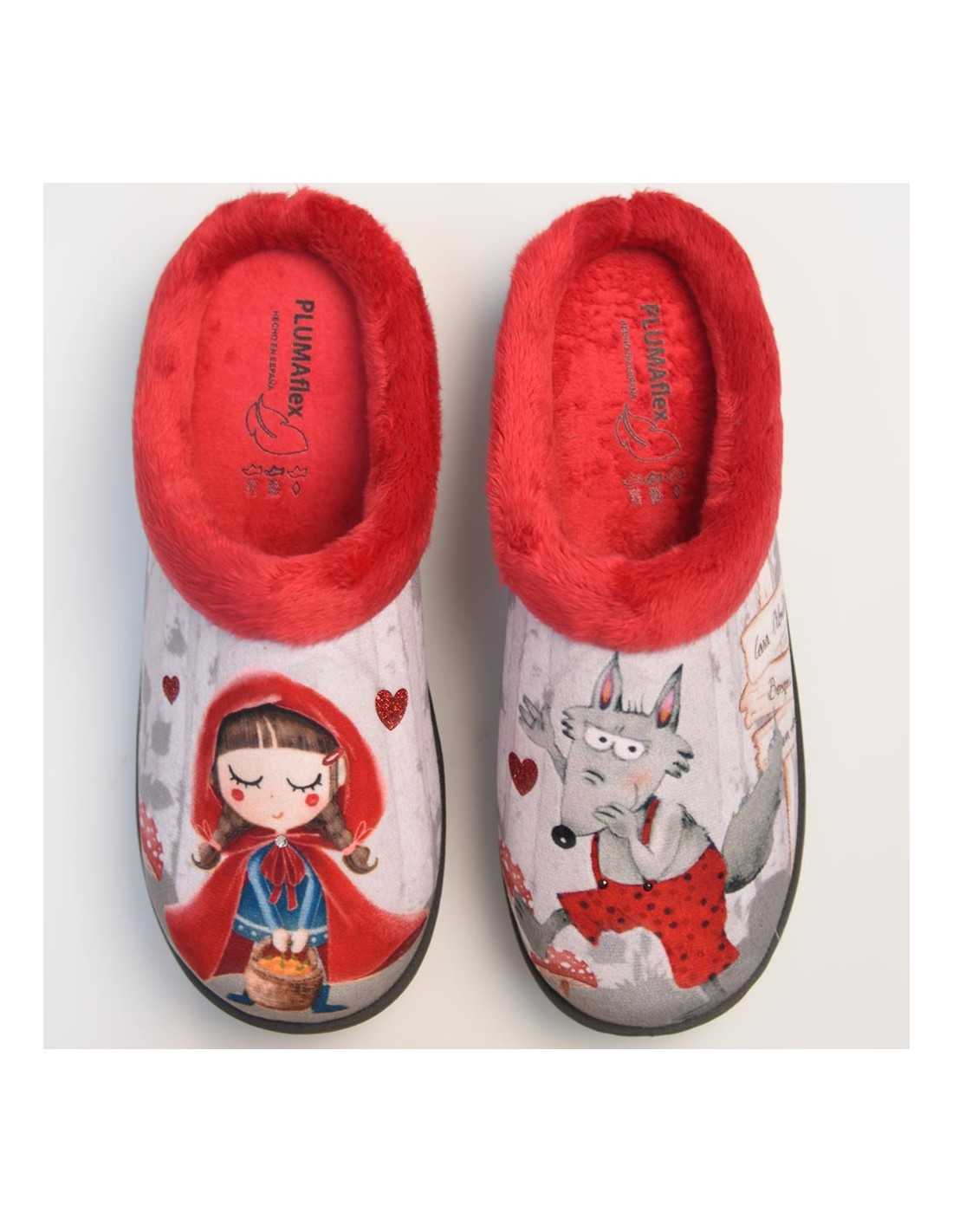 Zapatillas Plumaflex descalzarse Mujer con Plantilla Extraíble 12213 Lobo y Caperucita Roja